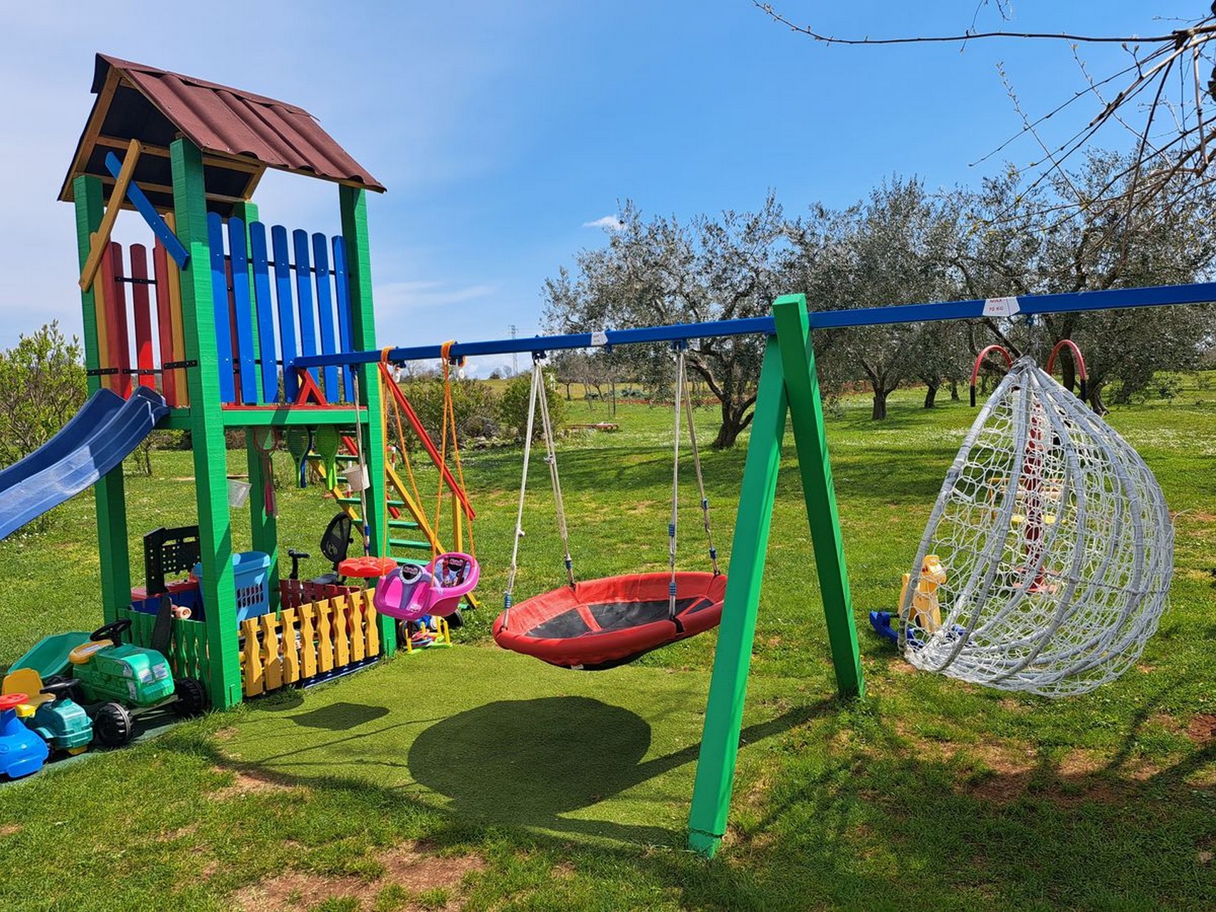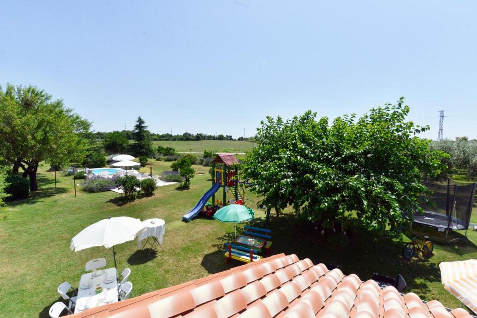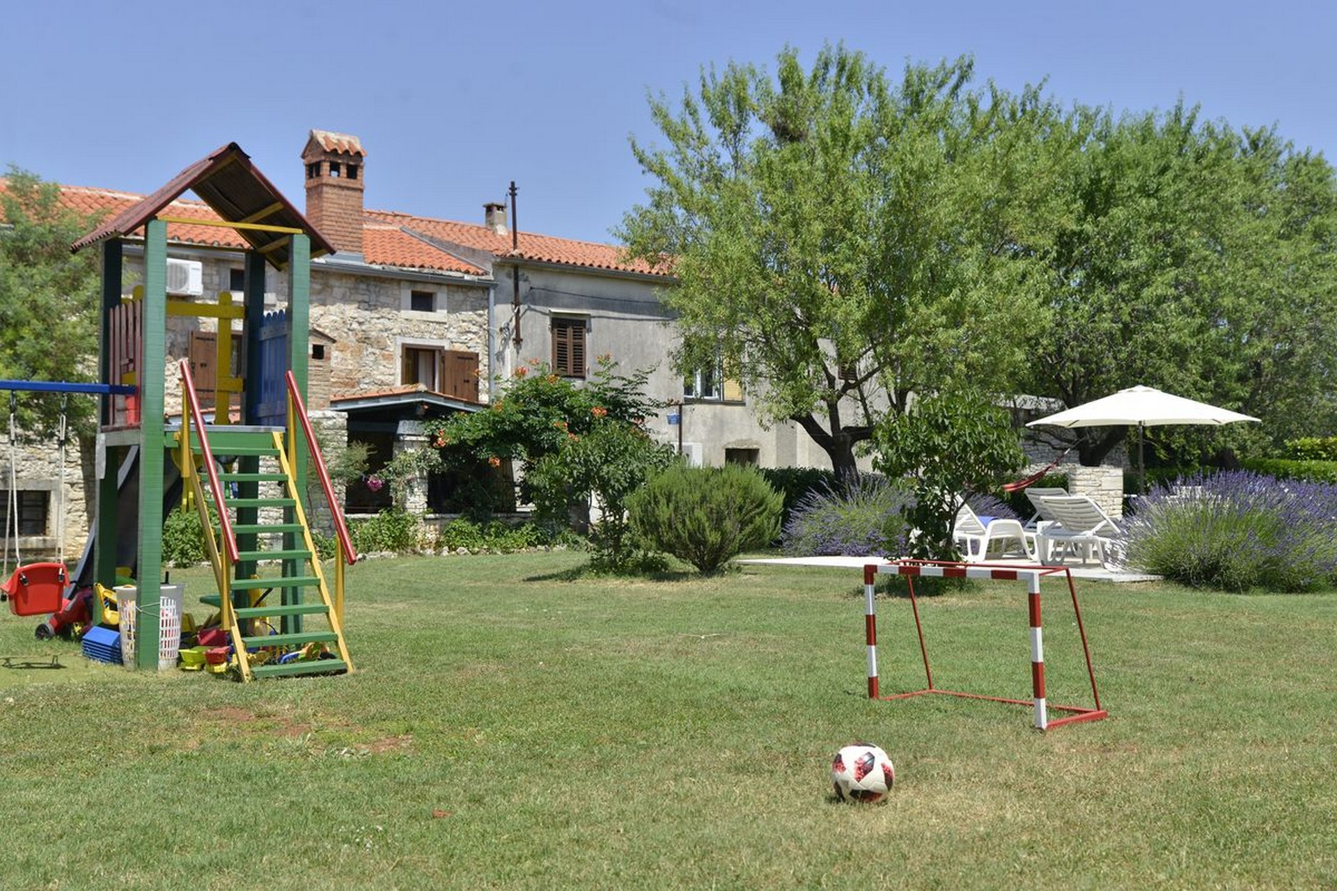 Na raspolaganju su vanjski bazen s ležaljkama i vanjskim tušem, velika dječja igraonica te vanjski grill smješten uz bazen, savršen za druženje i uživanje na otvorenom.