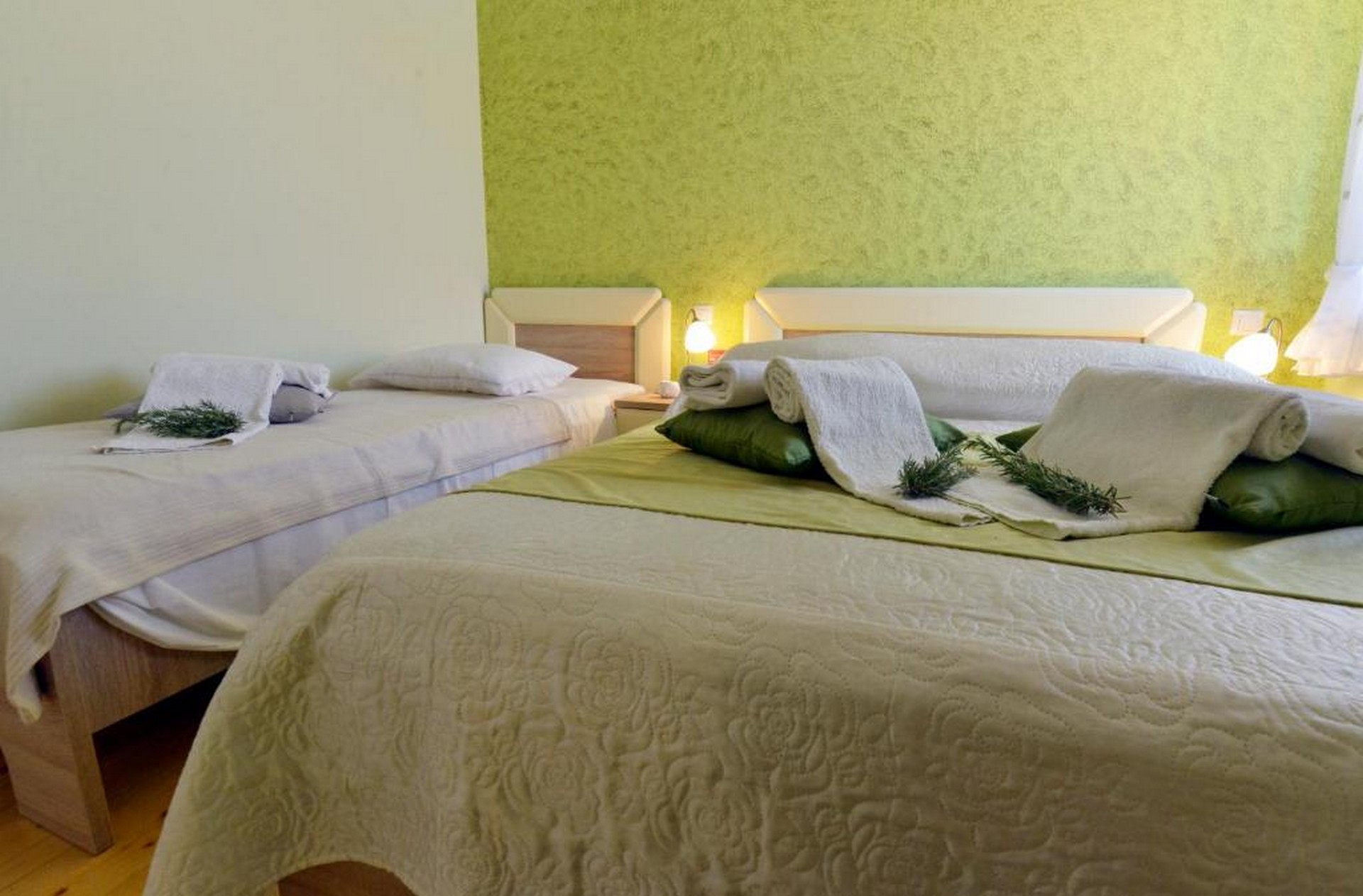 Soba Lavanda je dvokrevetna soba s bračnim krevetom i balkonom, dok je soba Ružmarin trokrevetna te uključuje bračni krevet i dodatni krevet za jednu osobu. Soba Mendula također je dvokrevetna, a posebnost joj je kupaonica s hidromasažnom kadom za dodatnu dozu opuštanja.