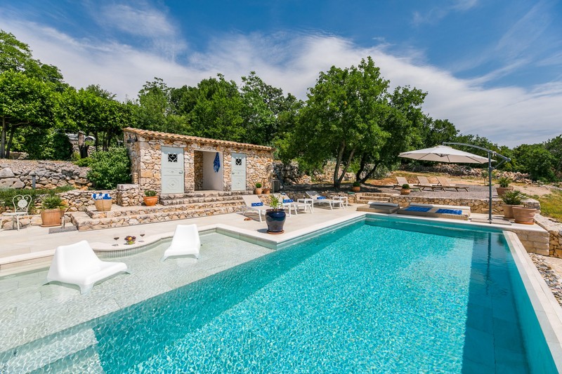 U nastavku terase je bazen 9x4 metra s vanjskim WC-om i tušem.