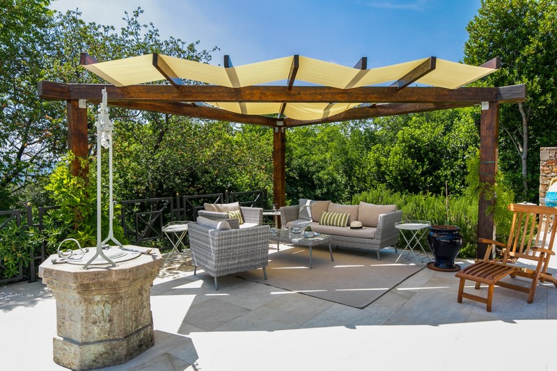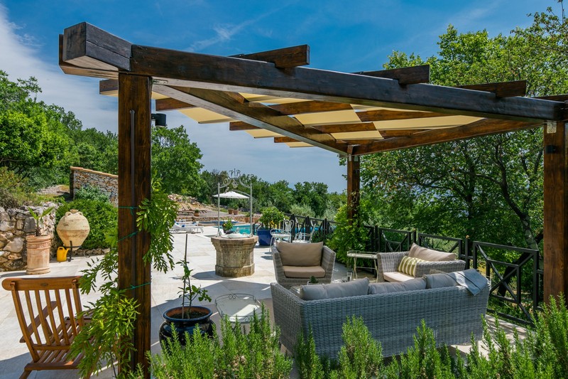 Na prostranoj vrtnoj terasi nalazi se pergola s vrtnom garniturom, idealna za miran i raskošan doručak.