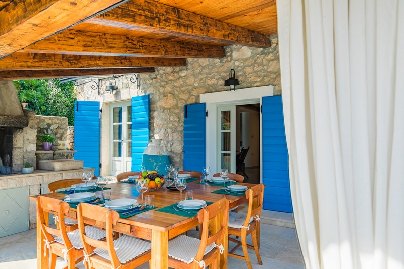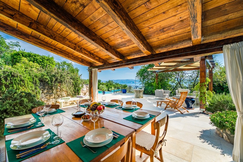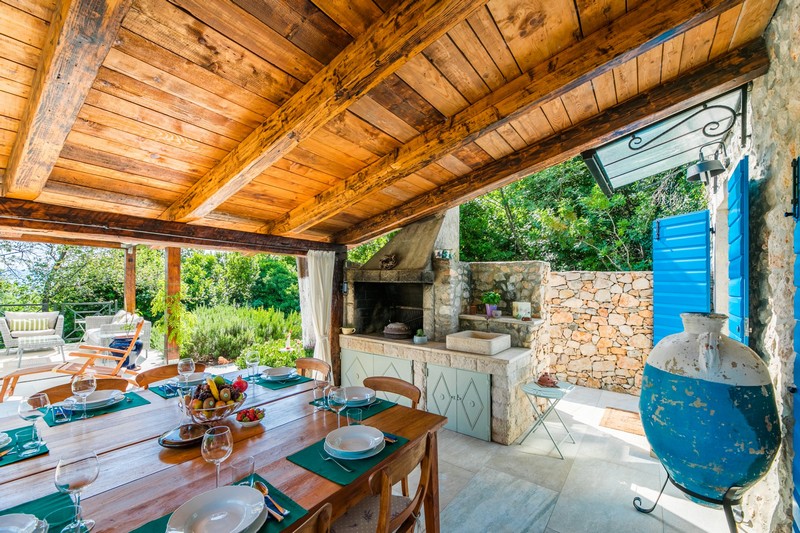Vila ima 125 m2 s natkrivenom terasom i roštiljem te stolom i stolicama za blagovanje.