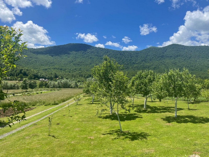 Pogled s kuće proteže se na vrt i rijeku.