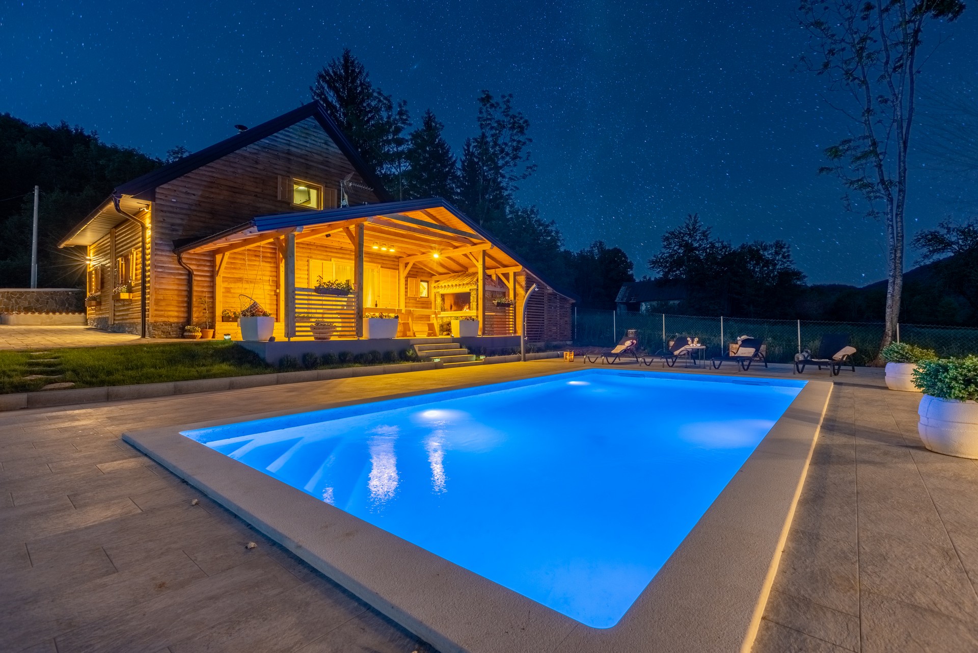 Gosti će posebno uživati u bazenu sa slanom vodom, wellnessu i ložištu pod zvijezdama, a najmlađima je osiguran kutak s igračkama i društvenim igrama te sportski sadržaji.