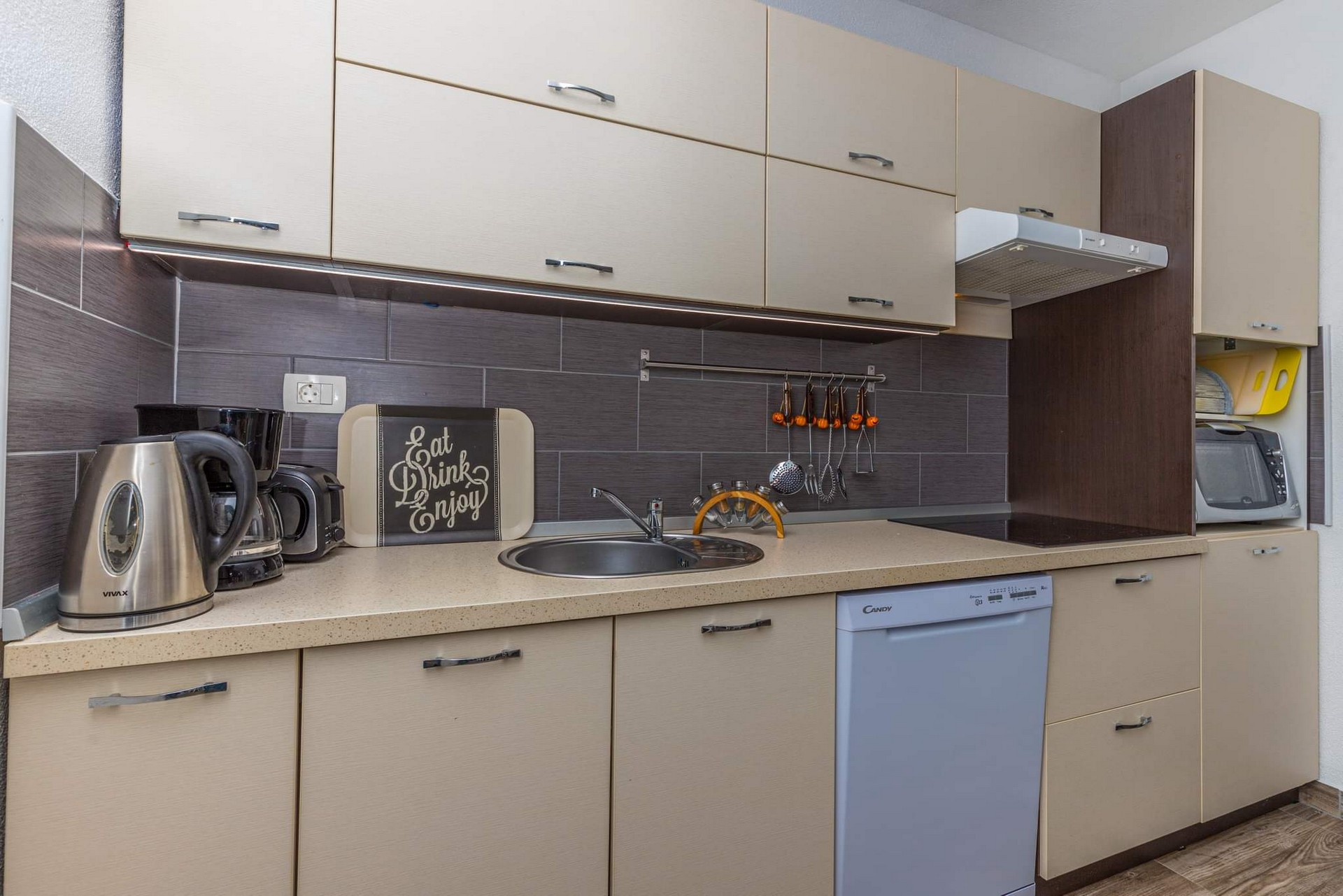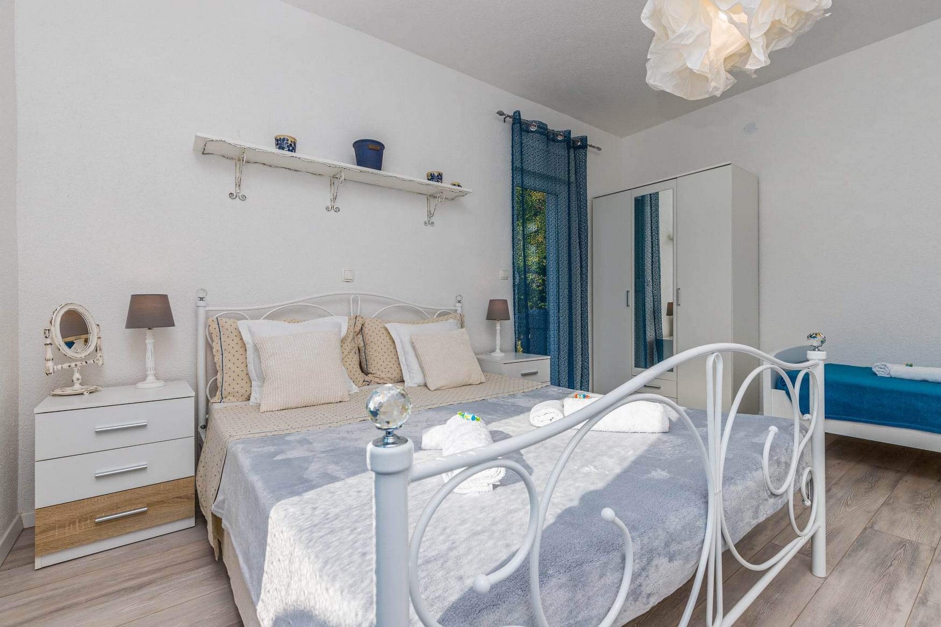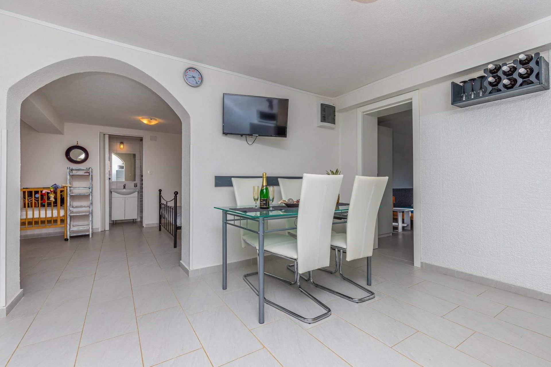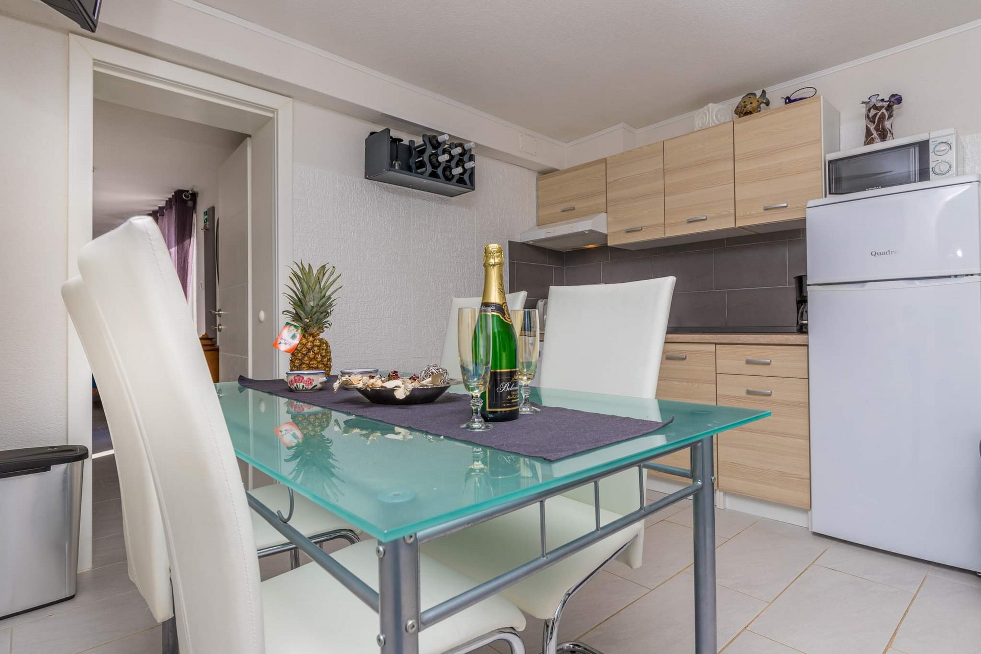 Drugi apartman u prizemlju također ima 2 spavaće sobe - jedna s bračnim i dječjim krevetom, a druga s dva kreveta 90x200 i izlazom na bazen, zajedno s kuhinjom i dnevnim boravkom.