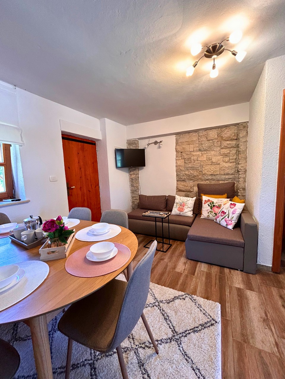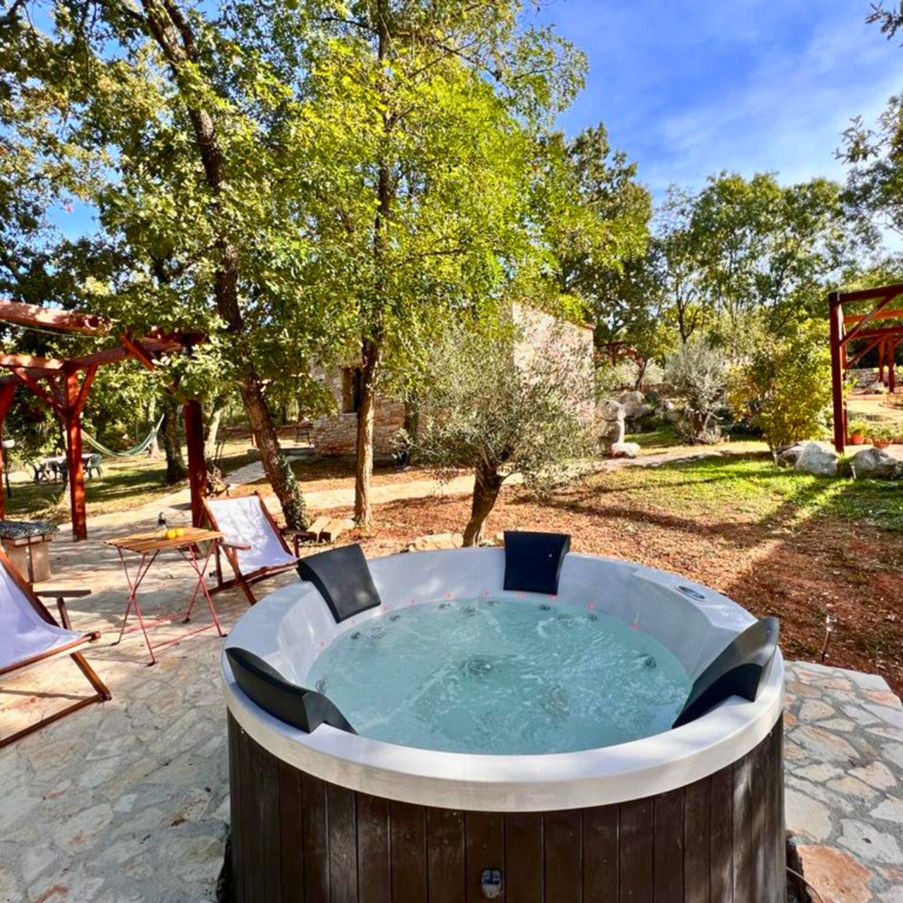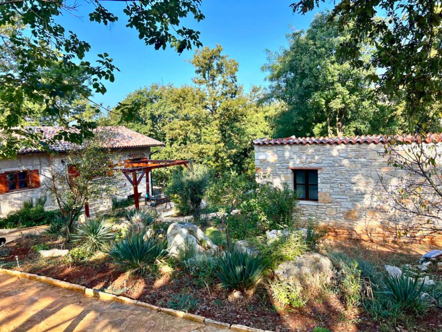 Paradiso Istriano Family Estate spans 6,000 m², including a spacious garden and a private forest. Guests can choose from five accommodations: two two-bedroom apartments (for 4 guests each) and three standalone stone cottages (for 2 guests each). The accommodations are designed to provide privacy while allowing larger groups to enjoy time together. Shared terraces and the grounds invite socializing, relaxation, and rejuvenation.