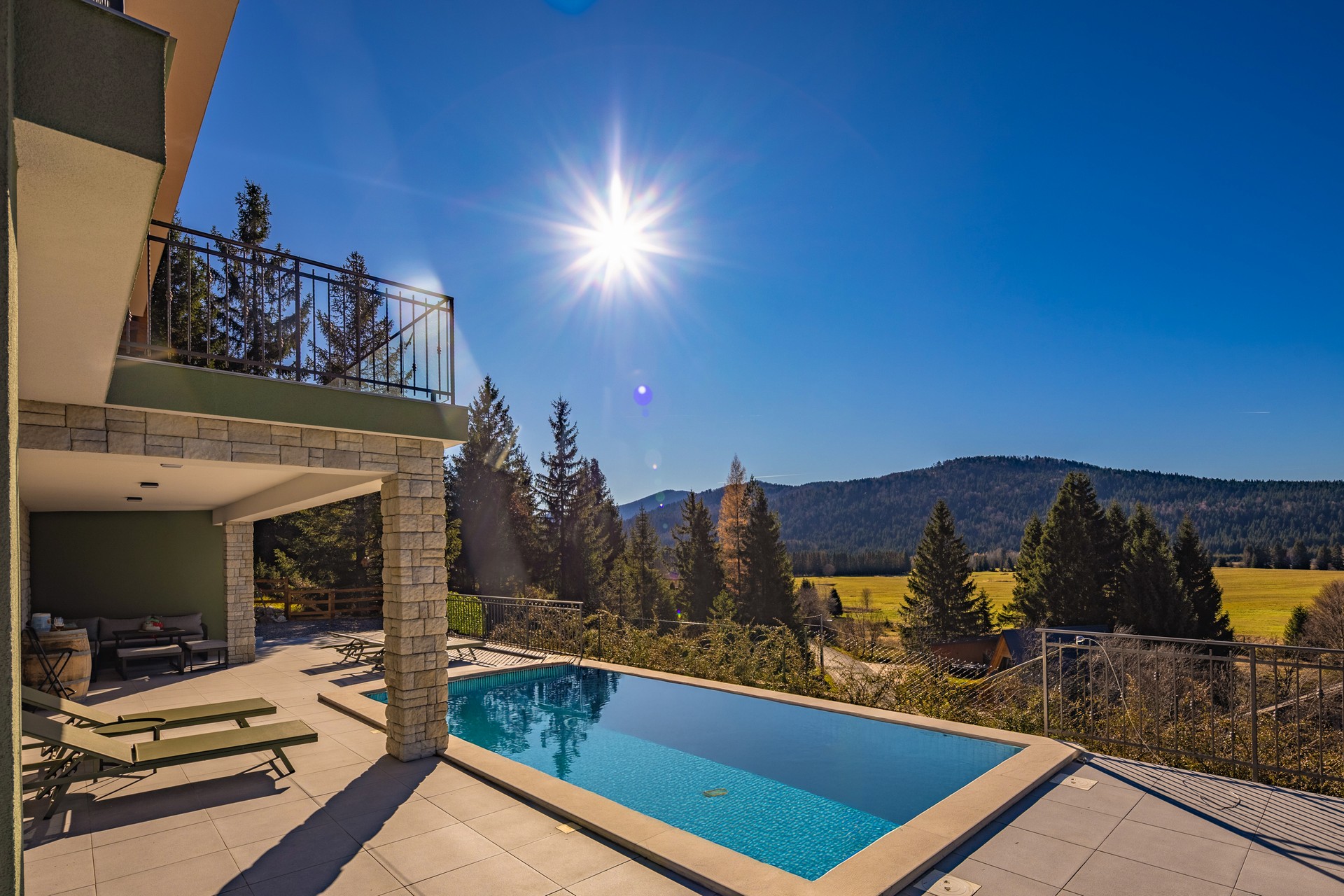 Villa Stella Verde is located on a hillside in a quiet part of Ravna Gora, offering complete privacy and spectacular views of the surrounding hills and mountains. The property is ideal for a family vacation or a stay with friends, combining comfort, wellness amenities, and natural beauty.