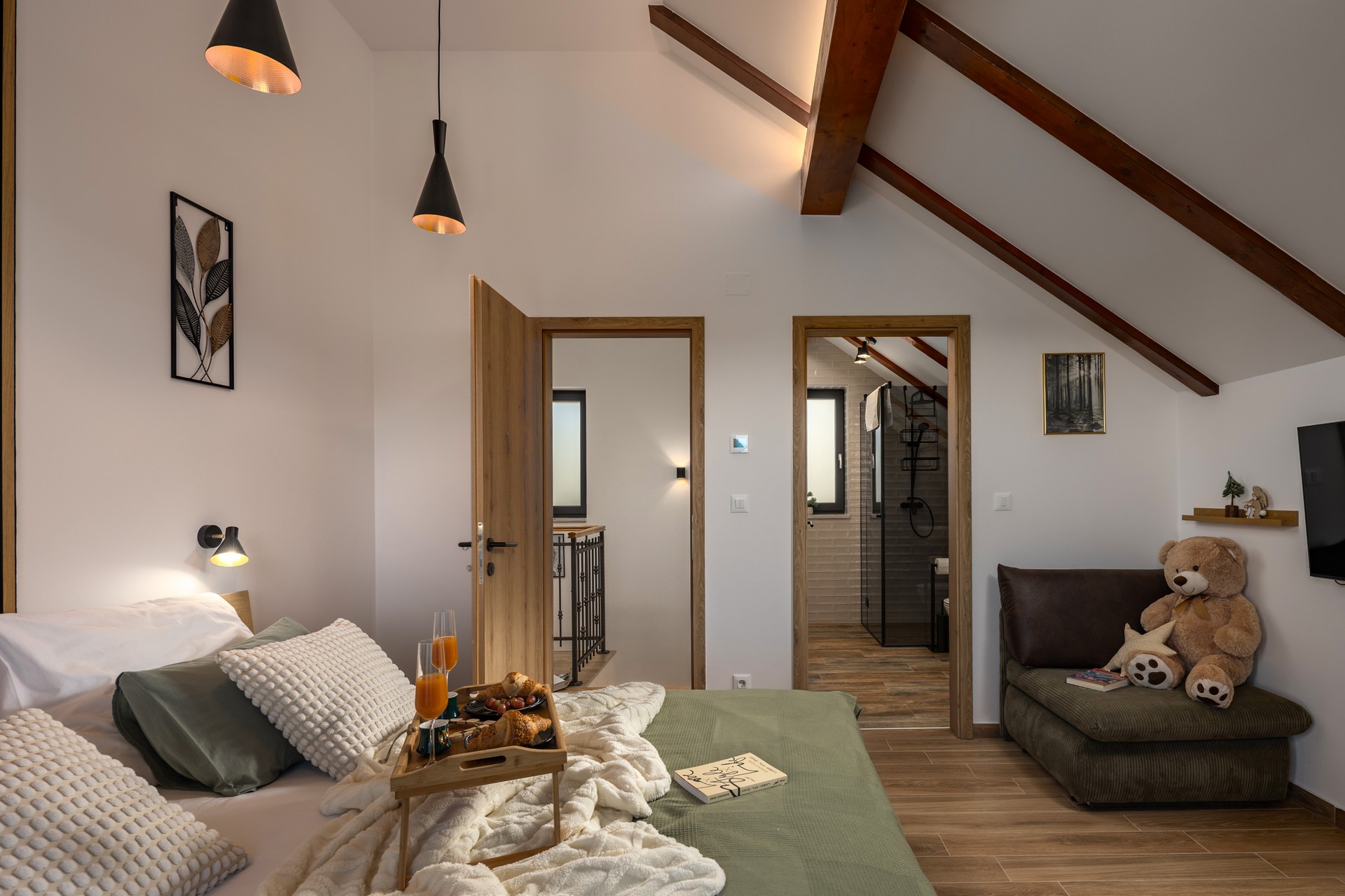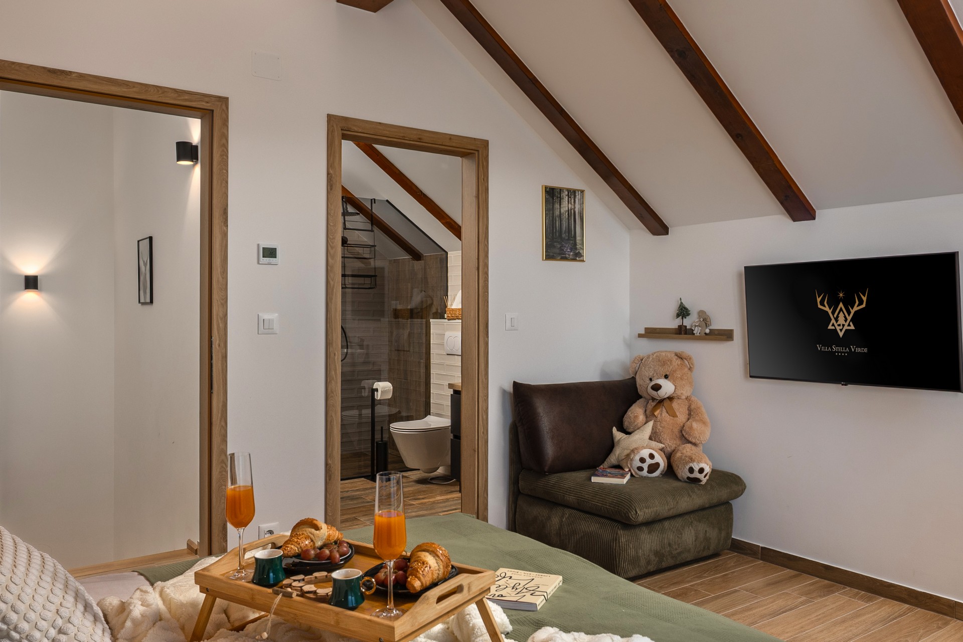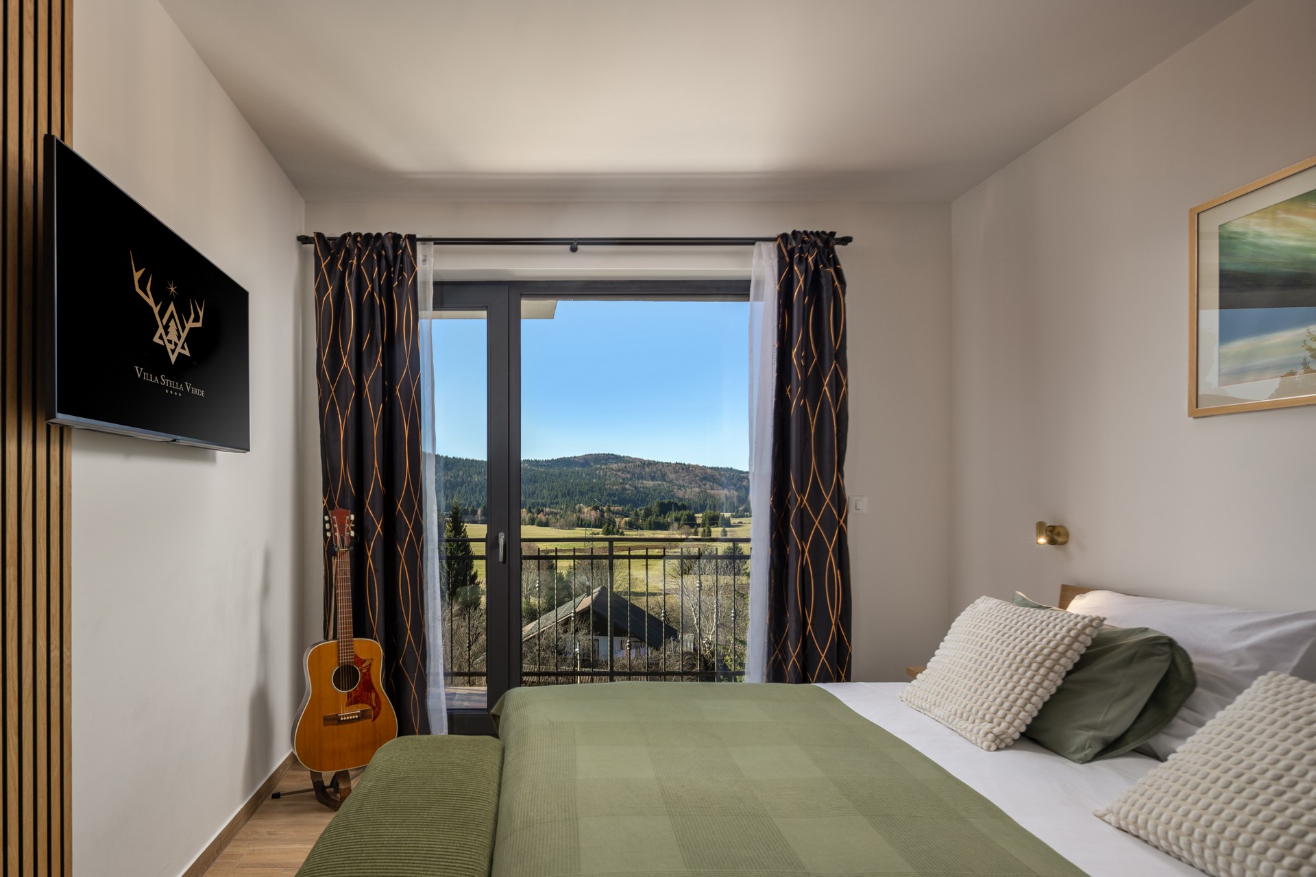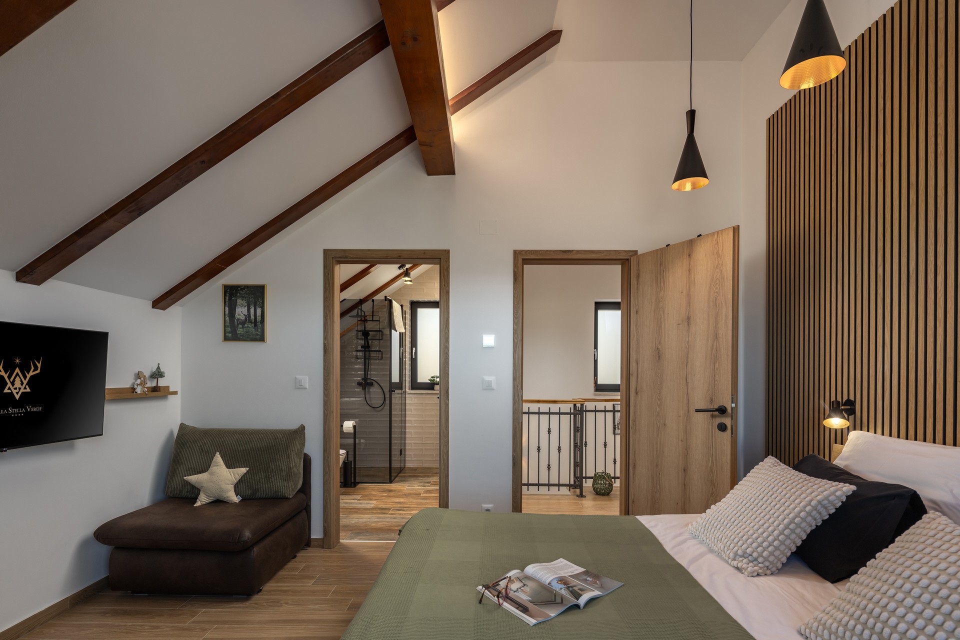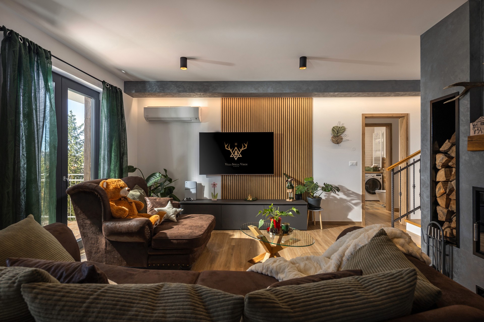 Villa Stella Verde is located on a hillside in a quiet part of Ravna Gora, offering privacy, natural views, and accommodation for up to 8 guests in 3 bedrooms with double beds (two of the bedrooms also have a sofa bed). The villa features 4 bathrooms with showers and a TV with Netflix in each room.